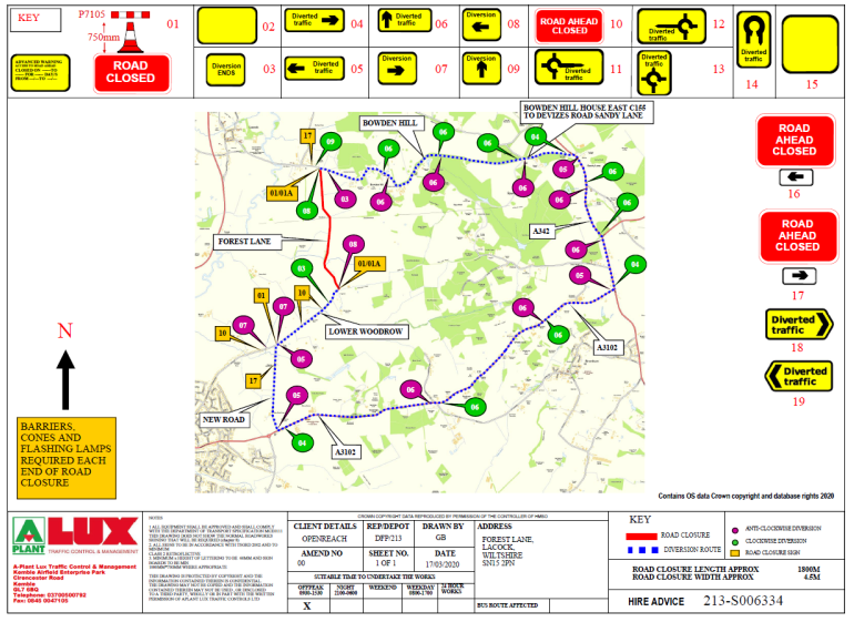 Wiltshire Council have issued a notice that Forest Lane will be closed between Melksham and Lacock between 9.30am and 3.30pm for the week commencing 6th July 2020 to enable BT to undertake cabling work.