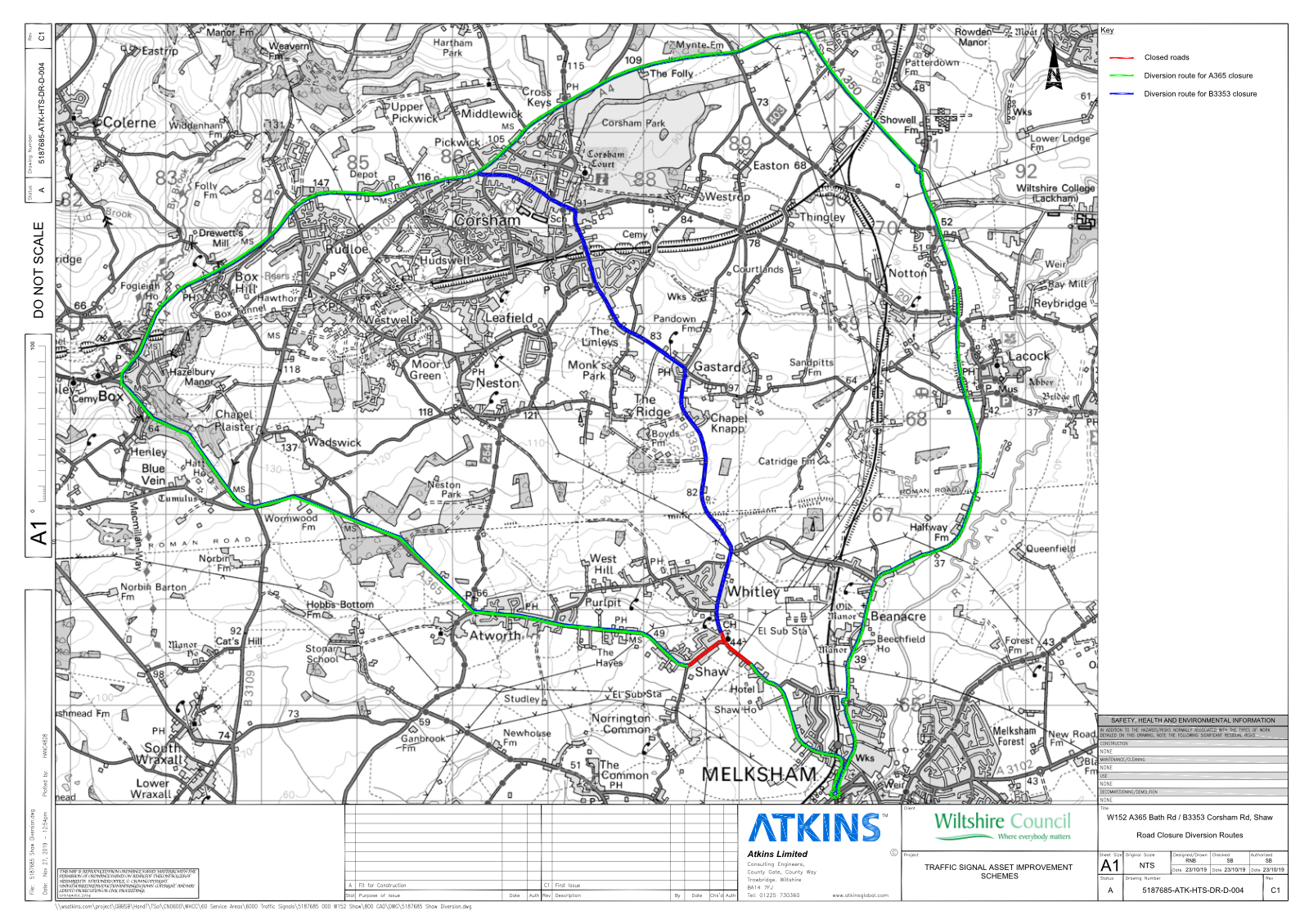 Wiltshire Council Section 14(1) of the Road Traffic Regulation Act 1984 Temporary Closure of: A365 Shaw Hill (Part), A365 Bath Road (Part) and B3353 Corsham Road (Part), Melksham Without (Ref: TTRO 6641) Notice is hereby given that the Wiltshire Council has made an Order to close temporarily to all traffic: